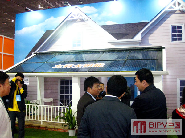 2013年10月30日來源:BIPV中國 有一個月沒給《光電建筑資訊》“發(fā)現(xiàn)之旅”欄目撰稿了,心里總是惦記著,倒不是人家催我,而是發(fā)現(xiàn)新奇之心使然。 恰好建筑光伏遮陽標(biāo)準(zhǔn)的初稿脫手,又逢第5屆無錫光伏展開幕,我便踏上了發(fā)現(xiàn)之旅。 無錫的天氣讓人詫異,預(yù)報說12℃~23℃,卻讓人感覺比北京要涼,或許是有海風(fēng)的原因吧。 無錫太湖國際博覽中心建在新區(qū),周邊還有些荒涼。光伏展只有一個展廳,約莫40多家參展商。參觀的人沒有想象的多。 與多數(shù)光伏展無異,展商多是組件、逆變器、匯流箱、跟蹤器等光伏產(chǎn)品,系統(tǒng)集成展示的圖片,也多是以地面電站為主。 正當(dāng)我興味索然的時候,“友科太陽能”的展位讓我眼前一亮。一座歐式二層的建筑模型,安裝了一個遮陽門廊,十塊多晶硅組件以瓦的形式鋪裝在遮陽坡面上,水流緩緩而下,昭示著良好的防水效果。